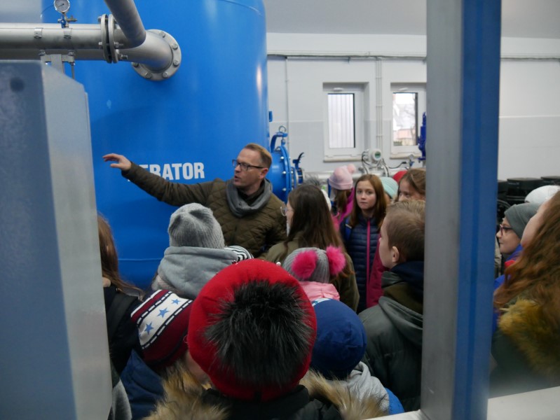 Zainteresowanie procesem uzdatniania wody i pracy urządzeń było duże, uczniowie zadawali pytania i z zainteresowaniem słuchali wyjaśnień. Na pamiatkę wizyty w SUW uczestnicy wycieczek edukacyjnych otrzymali bidony z logo gminy oraz zawartymi informacjami o dofinansowaniu.