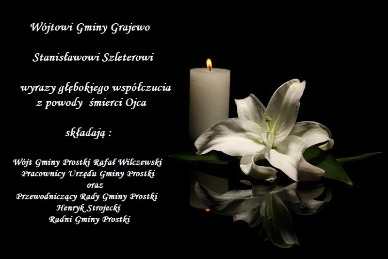 Kondolencje Opublikowano: 29 listopada 2021 13:26 Kategoria: Aktualności Wydrukuj Wyświetleń: 753 Zobacz równieżApel do mieszkańcówŁączy nas pomocModernizacja oświetlenia ulicznegoKondolencjeAwaria sieci wodociągowejŻyczenia z okazji Dnia Pracownika Socjalnego