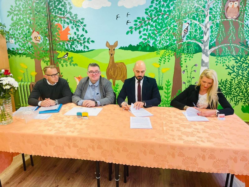 09.12.2021 r. w Rożyńsku Wielkim w obecności dyrektora Szkoły - pana Grzegorza Kacperskiego oraz kierownika Referatu Inwestycji i Rozwoju w Urzędzie Gminy - pana Sławomira Słonawskiego podpisałem umowę na "Budowę dodatkowego budynku Szkoły Podstawowej w Rożyńsku Wielkim" z panią Martą Machaj właścicielką przedsiębiorstwa, wyłonionego w procesie postępowania przetargowego (PHU Marta Machaj).