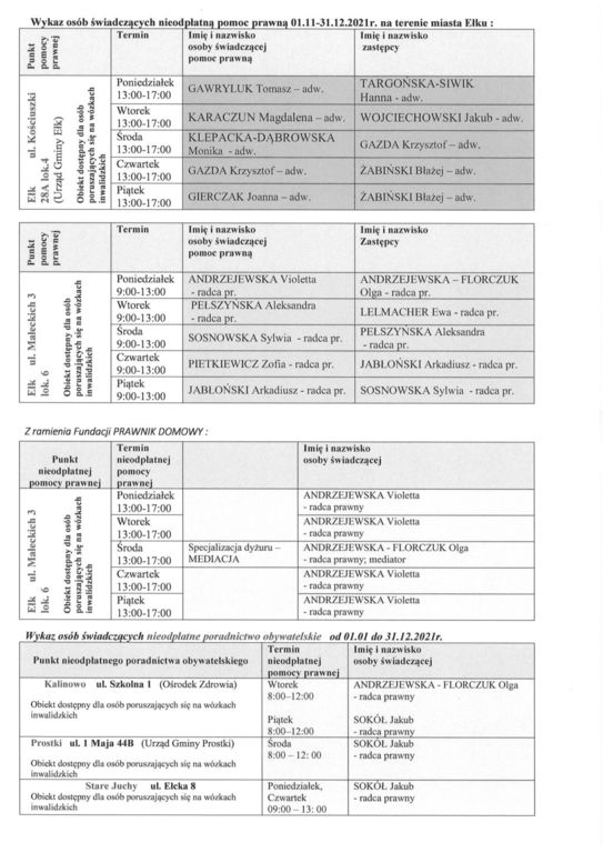 Na prośbę Starosty Ełckiego zamieszczamy aktualny wykaz lokali nieodpłatnej pomocy prawnej i nieodpłatnego poradnictwa obywatelskiego oraz osób świadczących npp i npo na terenie powiatu ełckiego w roku 2021.