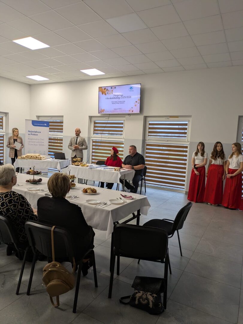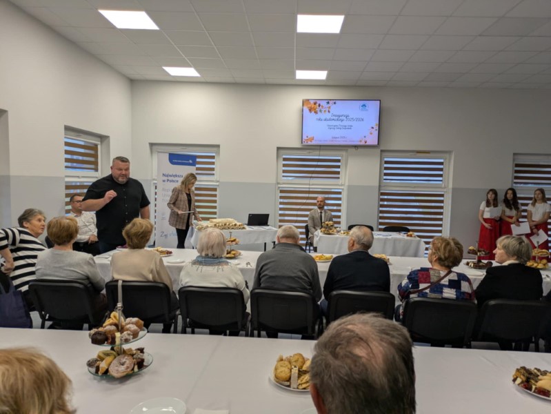 Wójt Gminy Prostki wręczył drobne upominki wszystkim uczestnikom inauguracji i w kilku słowach wyraził uznanie dla proboszca za podjętą inicjatywę utworzenia UTW. Zebranym mieszkńcom za chęć rozwoju i samorealizacji - Cieszę się także, że nowa inwestycja – budowa Centrum Kultury i Pożarnictwa w Wiśniowie Ełckim – stanie się przestrzenią spotkań, nauki i integracji dla seniorów. Niech ten rok przyniesie wiele dobrych doświadczeń, radości i nowych możliwości! - powiedział wójt Rafał Wilczewski.