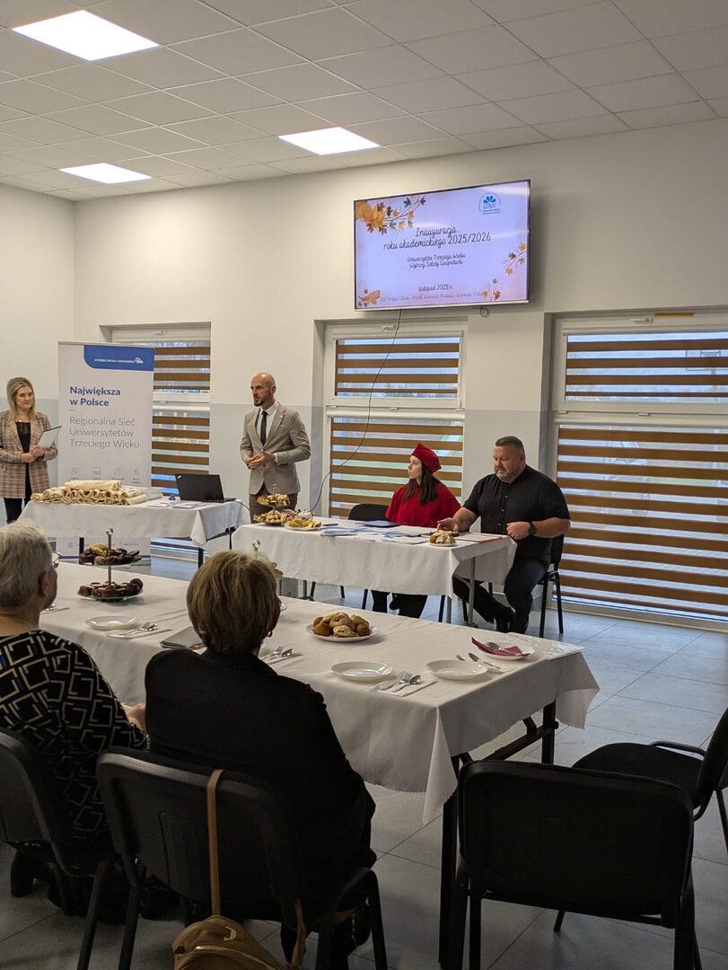 Dziekan Agnieszka Danielewicz w swoim wystapieniu pogratulowała zebranym - Jesteśmy dumni, że Uniwersytet Trzeciego Wieku tworzy kolejne miejsce rozwoju, integracji i aktywności dla seniorów. Nowym słuchaczom życzymy twórczego, pełnego motywacji roku akademickiego! .