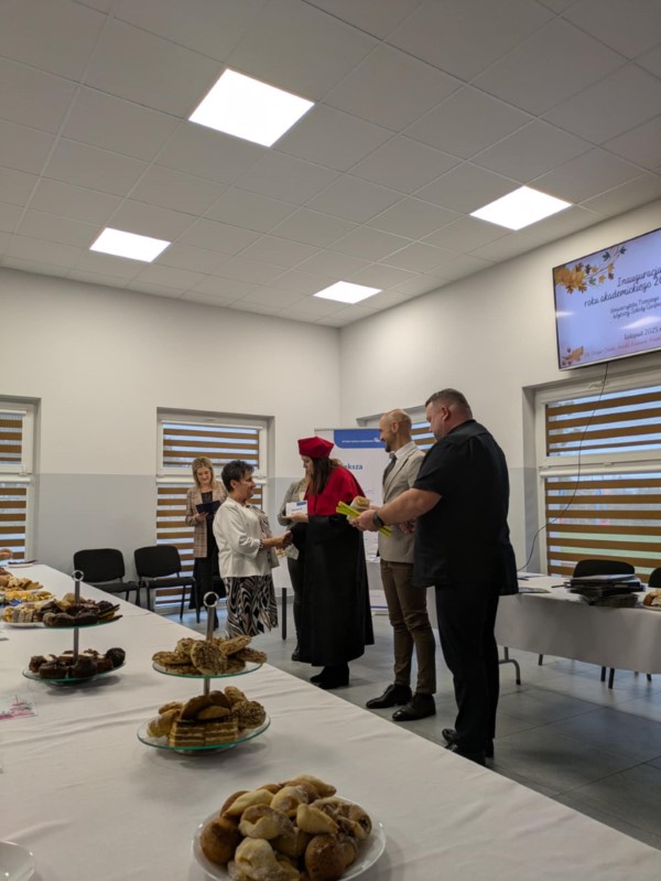 Po części oficjalnej był czas na rozmowy i refleksje przy kawie i słodkościach. Uroczystość uświetnił występ dziewcząt ze scholi parafialnej. Nowym słuchaczom życzymy twórczego, pełnego motywacji roku akademickiego 2025/2026.